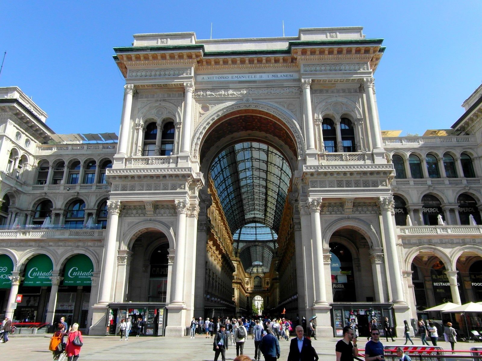 Galleria Vittorio Emanuele IILa Galleria Vittorio Emanuele II a été construite en 1877 sur les dessins de l'architecte Giuseppe Mengoni. Elle forme une immense croix dont la voûte de verre et d'acier culmine à 50 m de hauteur et abrite de nombreux magasins, restaurants et autre cafés. Avec son sol carrelé, elle permet de joindre la Piazza della Scala et la Piazza del Duomo dans un environnement couvert mais où la sensation d'espace et de liberté domine. Restaurée pour l'exposition universelle de Milan en 2015, elle offre un nouvel éclat à ses décorations. Véritable rue couverte, c'est un incontournable de Milan. Une légende indique que si l’on veut revenir à Milan, il est conseillé de tourner sur soi-même pour « écraser » du talon les attributs du taureau en mosaïque (représentant le blason de Turin) sur le sol du splendide octogone central de la Galleria.